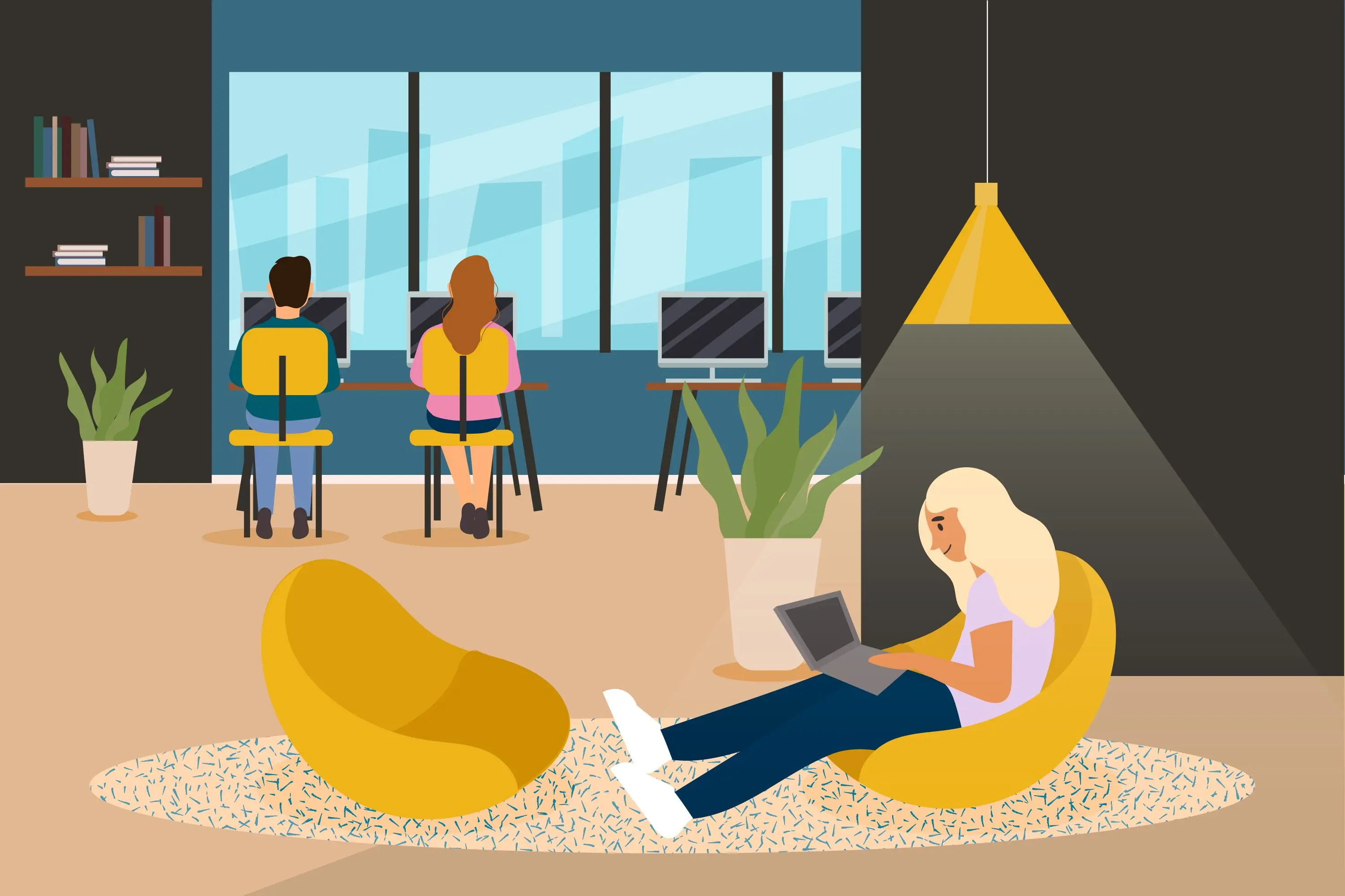 - Réduction de l'isolement social : Les espaces de coworking permettent aux employés de travailler en présence d'autres professionnels, favorisant les échanges et la collaboration. Ainsi, les travailleurs à distance peuvent éviter l'isolement social et bénéficier d'un soutien mutuel.